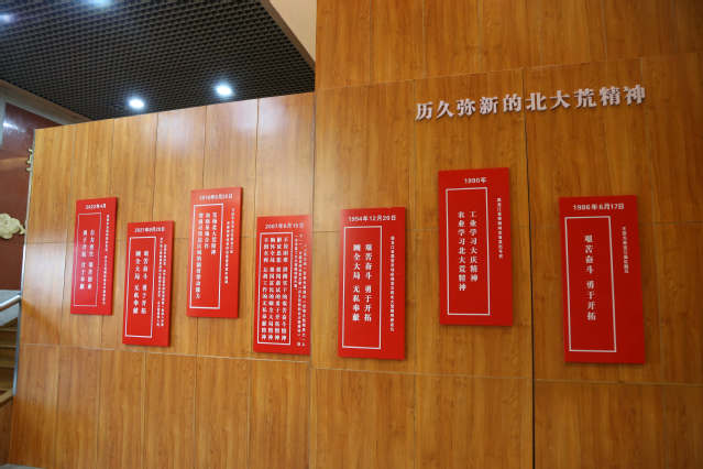 开荒第一犁书写屯边奇迹,巨幅浮雕《北大荒人颂》震撼人心。在北大荒博物馆,围绕“北大荒精神”这一核心主题,同学们依次参观了“垦前史略”“精神之源 铸剑为犁”“时代楷模 精神永恒”“精神之路 航母启航”“精神之光 文化沃土”和“精神之力 改革前行”六个展厅,见证了70余年间几代北大荒人在这里挥洒青春,用汗水和热血把一个“烂草污泥真乐土,毒虫野兽美家乡”改天换地,用勤劳与奉献创造出“当年开荒、当年生产、当年收益”的垦荒奇迹,将偏僻、荒蛮、寒冷代名词的“北大荒”变成富饶的“北大仓”,成为热滚滚的“中国饭碗”的代名词和有力保障。